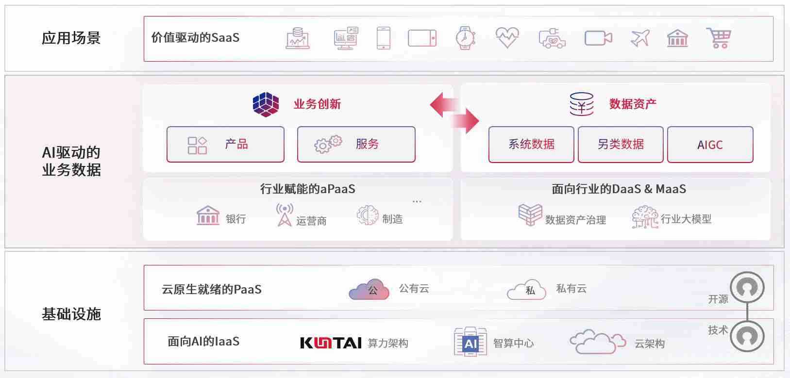 数字时代,,,围绕企业数字化转型的关键要素,,,,菠菜论坛数码开创性的提出数云融合战略和技术体系框架,,,着力在云原生、、数字原生、、AI原生和信创产业上架构产品和服务能力,,,为处在不同数字化转型阶段的快消零售、、、汽车、、、金融、、、、医疗、、政企、、、教育、、、运营商等行业客户提供泛在的敏捷IT能力和融合的数据驱动能力,,构建跨界融合创新的数字业务场景和新业务模式,,,,助力企业级客户建立面向未来的核心能力和竞争优势,,,,全面推动社会的数字化、、、、智能化转型升级。。